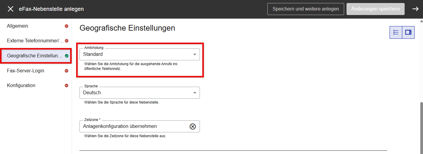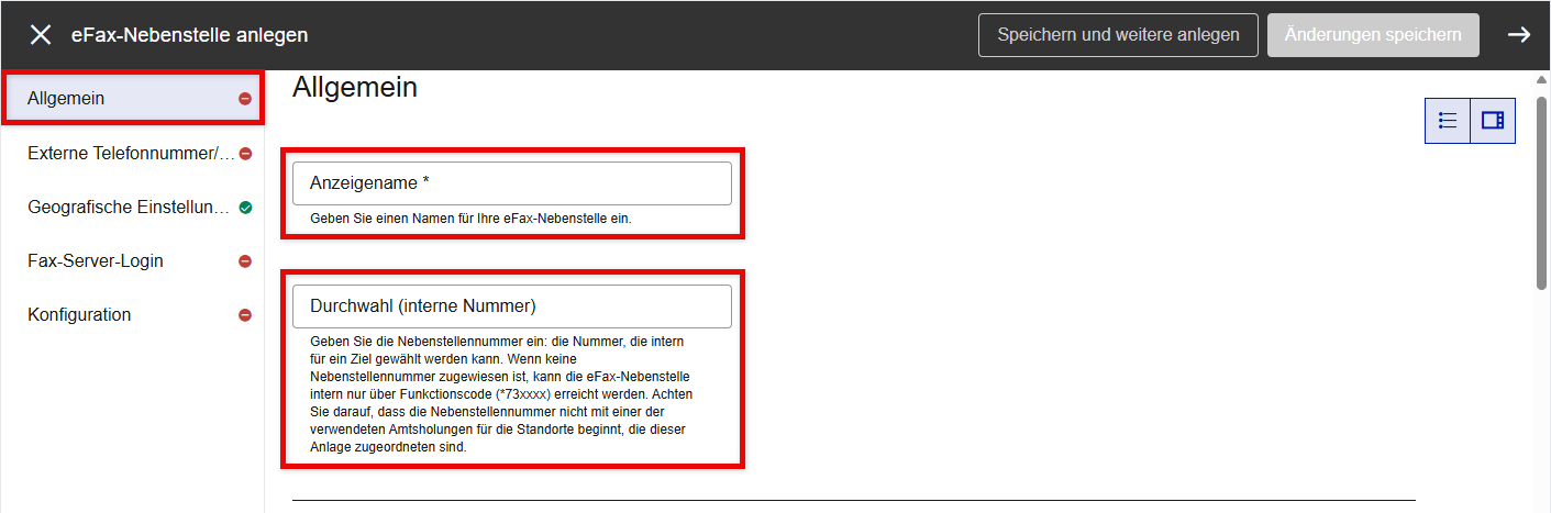 Nebenstelle | Weist eine interne Nebenstellennummer zu. Bitte beachten Sie, dass die Zuweisung einer Nebenstellennummer nicht zwingend erforderlich ist, sodass Sie dieses Feld auch frei lassen können. Wenn Sie sich für die Zuweisung einer Nebenstellennummer entscheiden, beachten Sie bitte, dass die gleichen Regeln gelten wie im Abschnitt Telefonnebenstellen. |