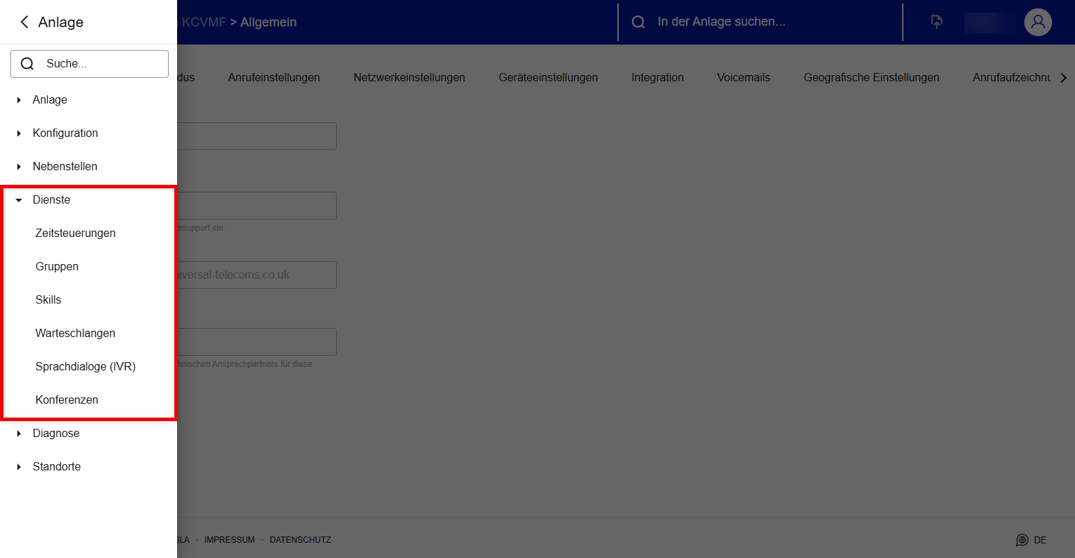 Dienste (Zeitsteuerung, Gruppen, Skills, Warteschlangen, Sprachdialoge IVRs und Konferenzen)