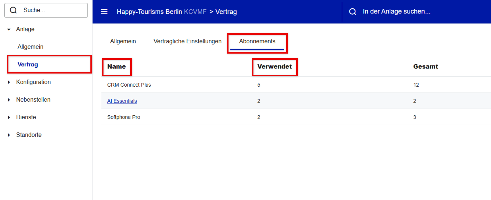 Vertrag (Abonnements & Beschränkungen)