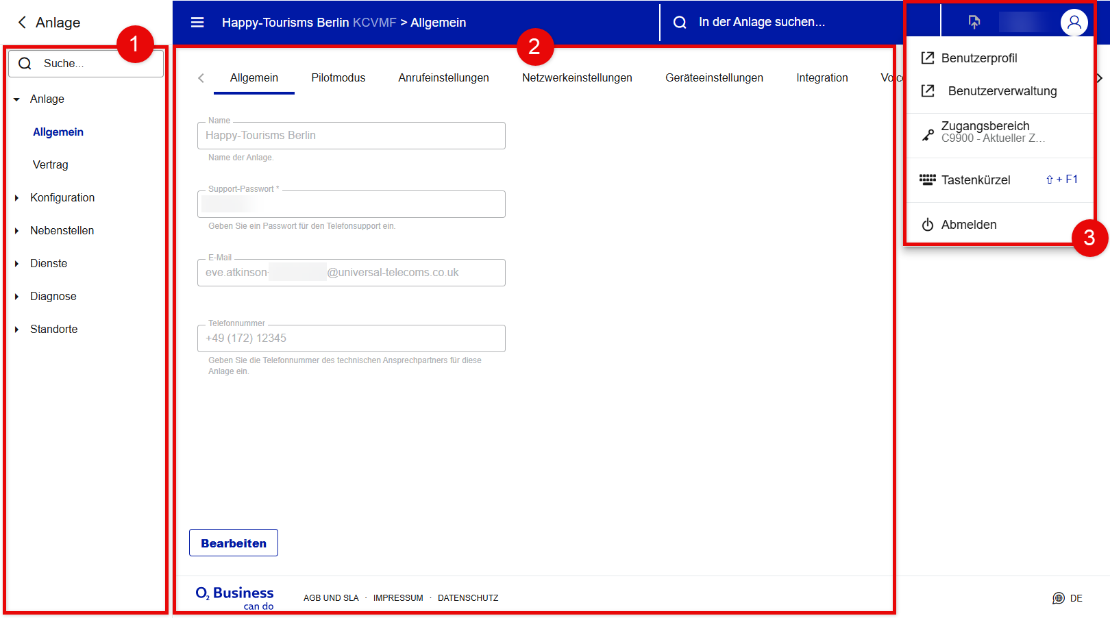 Phone number | Mobilfunknummer des technischen Ansprechpartners bzw. Teams des Anlageninhabers. Dieses Feld kann leer gelassen und zu einem späteren Zeitpunkt ausgefüllt werden. |