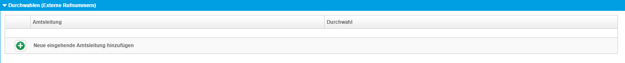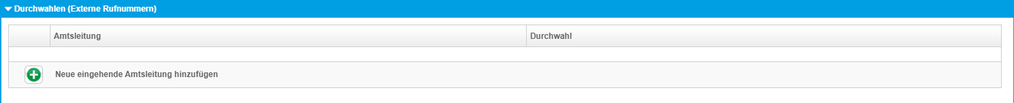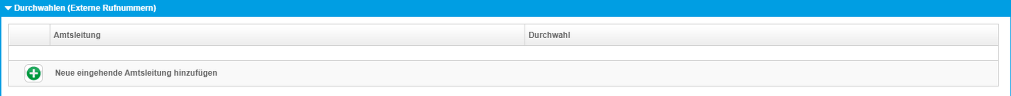 | DURCHWAHLEN | Sie können hier die Zuordnung von Rufnummern zu Amtsleitungen ändern und Durchwahlen mit Nebenstellen verknüpfen. |