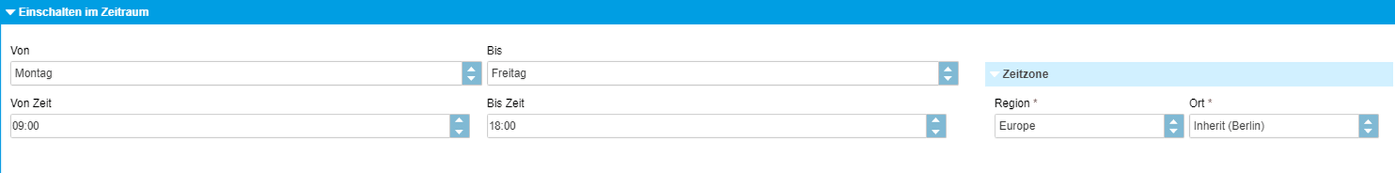 Zeitsteuerungsziele beinhalten nun ein Zeitzonen-Setting. Durch dieses ist es möglich, Zeitzonen mittels Region (z. B. Europa) und Ort (z. B. Berlin) zu konfigurieren.
