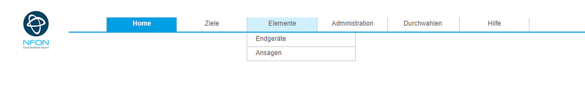 | ELEMENTE | Die Rubrik Elemente umfasst alle Grundbausteine der Telefonanlage, d.h. die Telefone (Endgeräte) an sich sowie die Audiodateien zur Nutzung als Wartemusik, Wartemusik für Warteschlangen und Ansagen. Sie benötigen die Elemente als Bausteine für die Konfiguration von Ziele. |