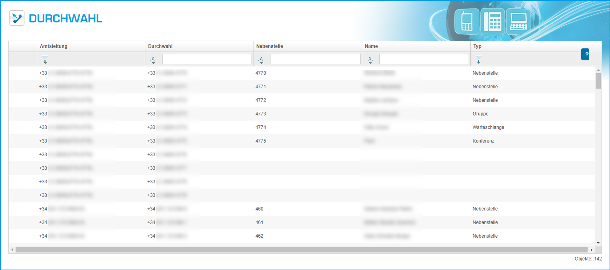 | 3. | Hier werden die Nebenstellen angezeigt. |
