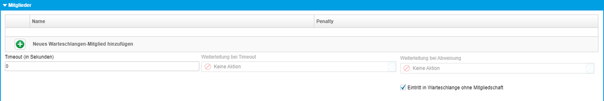 So legen Sie einen neuen Dienst (unter Ziele) an, beispielsweise eine Warteschlange, und Sie bestimmen direkt bei der Konfiguration des Dienstes, ob eine Nebenstelle zugewiesen werden soll oder nur eine bestimmte Durchwahl.