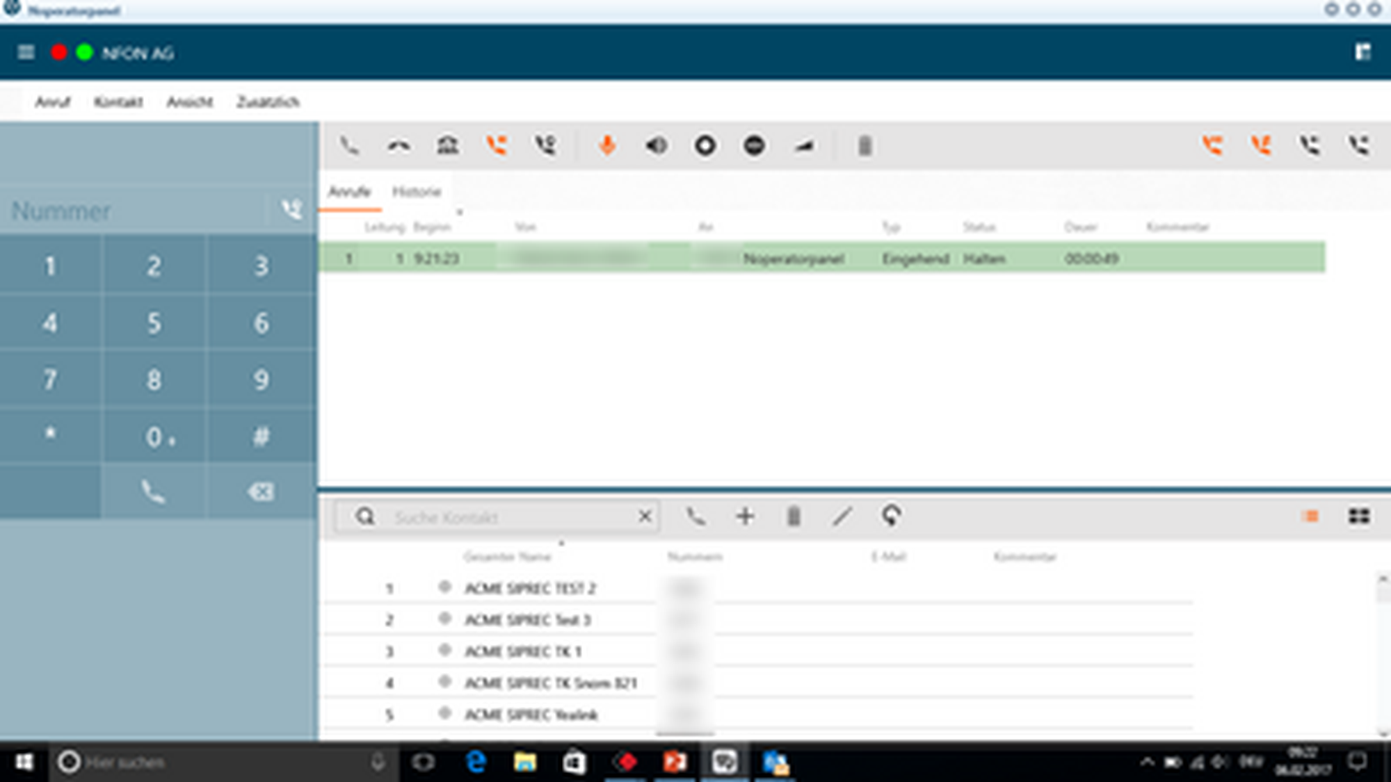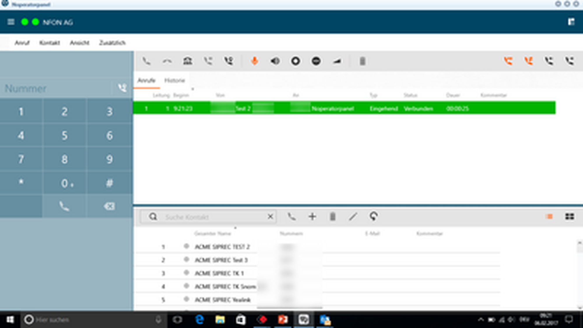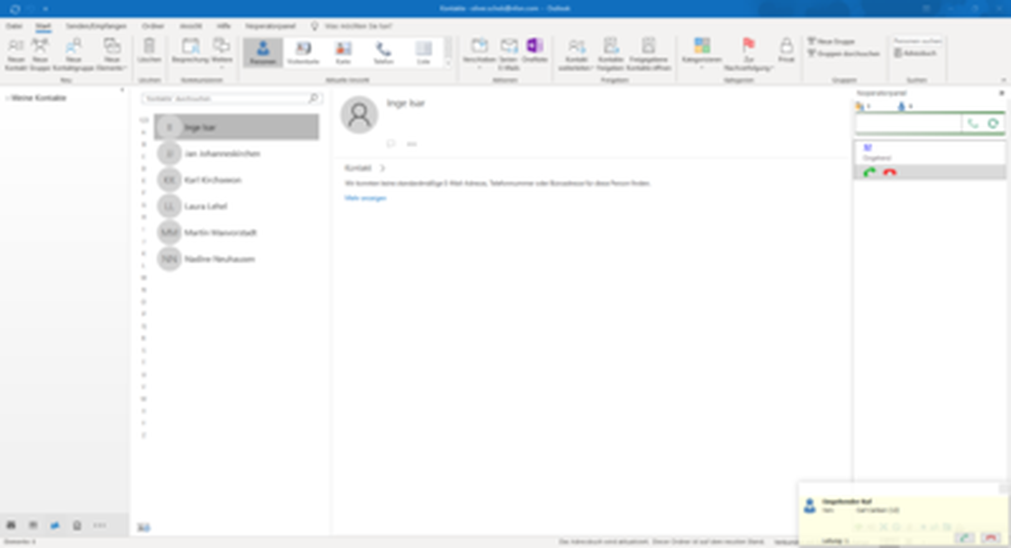 In Outlook können anschließend Anrufe angenommen und / oder Anrufe ausgelöst werden.