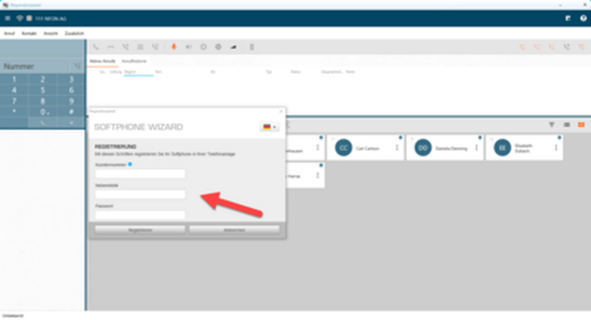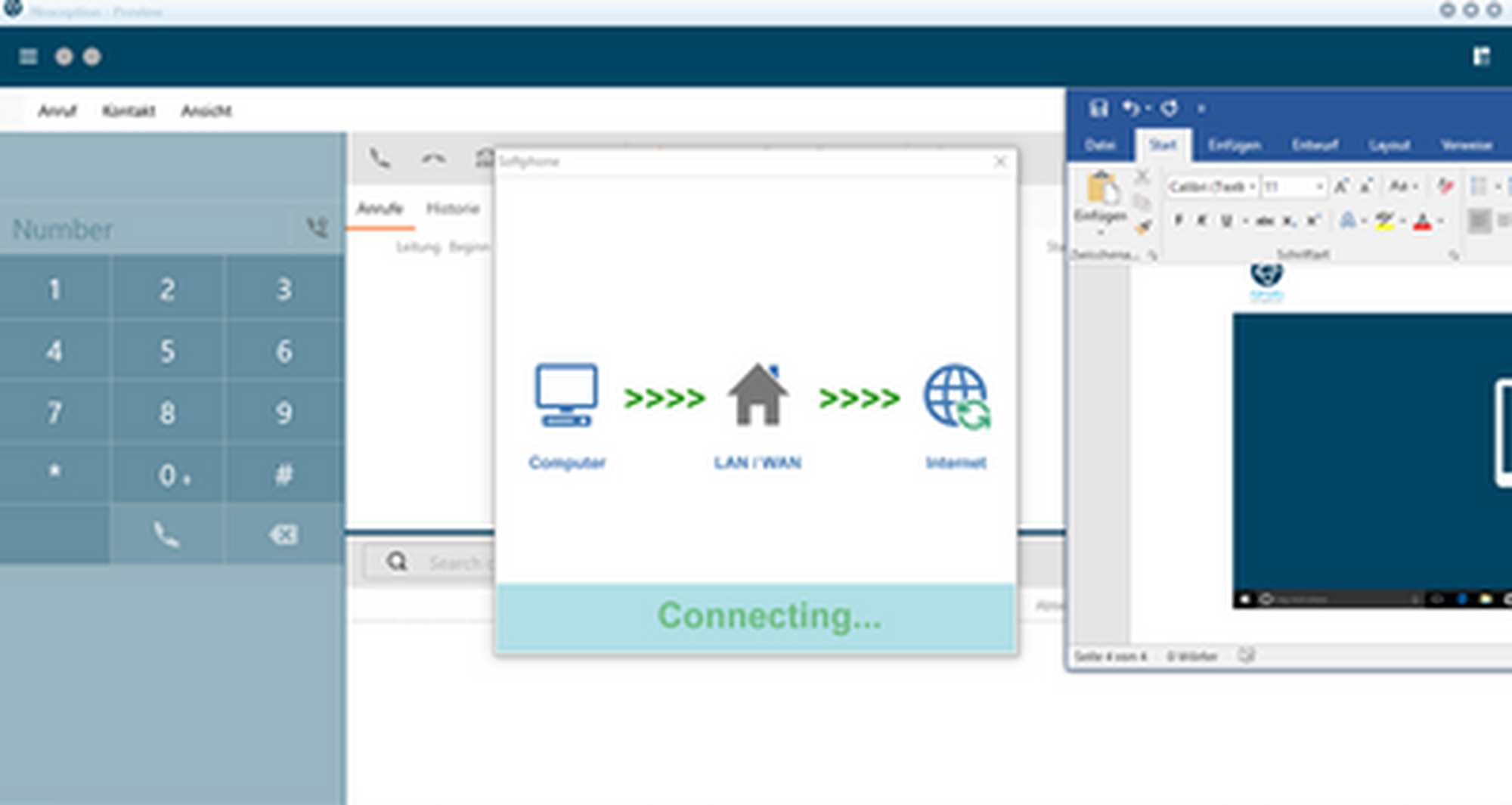 Kann die Verbindung erfolgreich hergestellt werden, erscheint der Softphone Wizard.