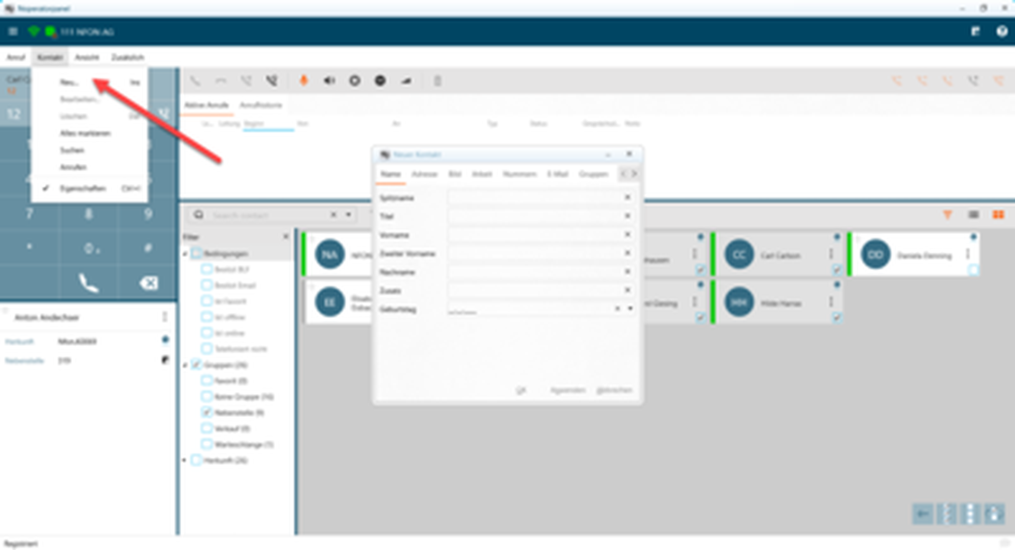 Im NOP können Sie eigene Kontakte anlegen, speichern und exportieren.
