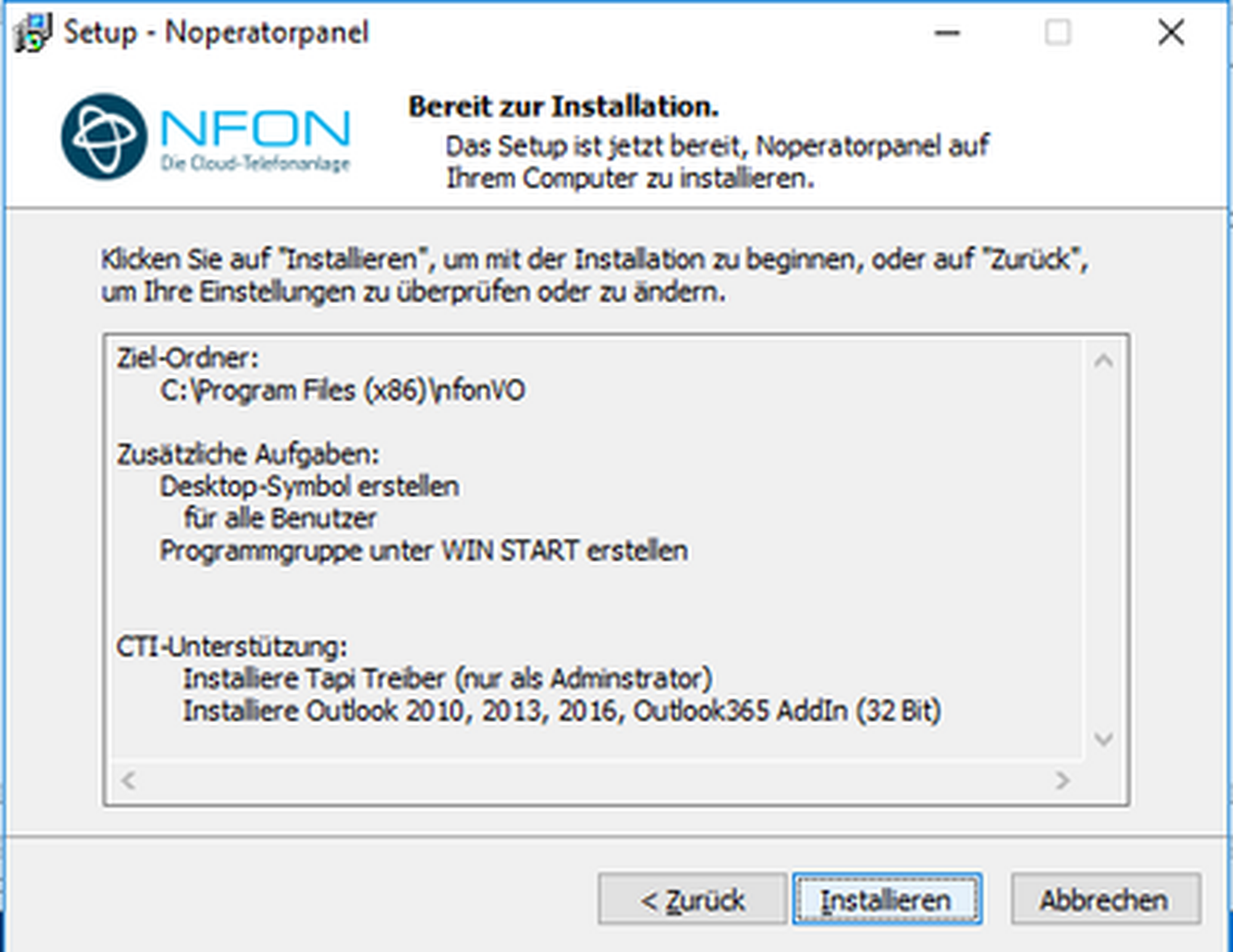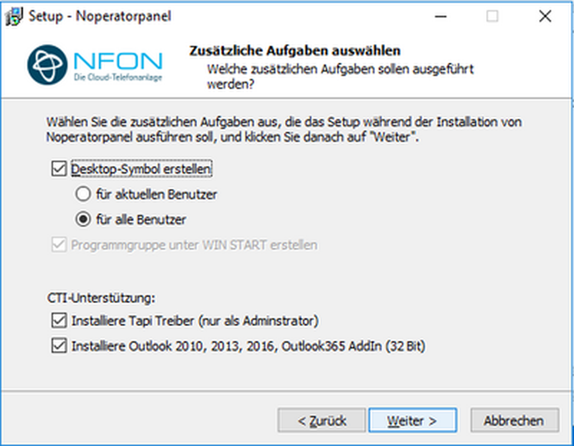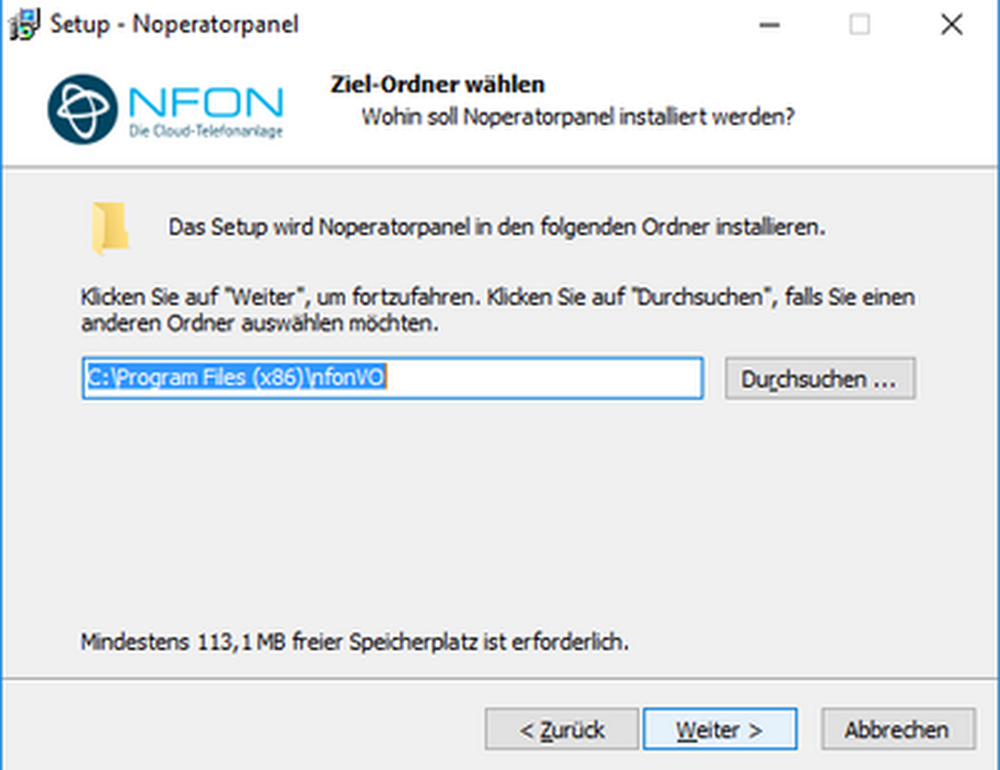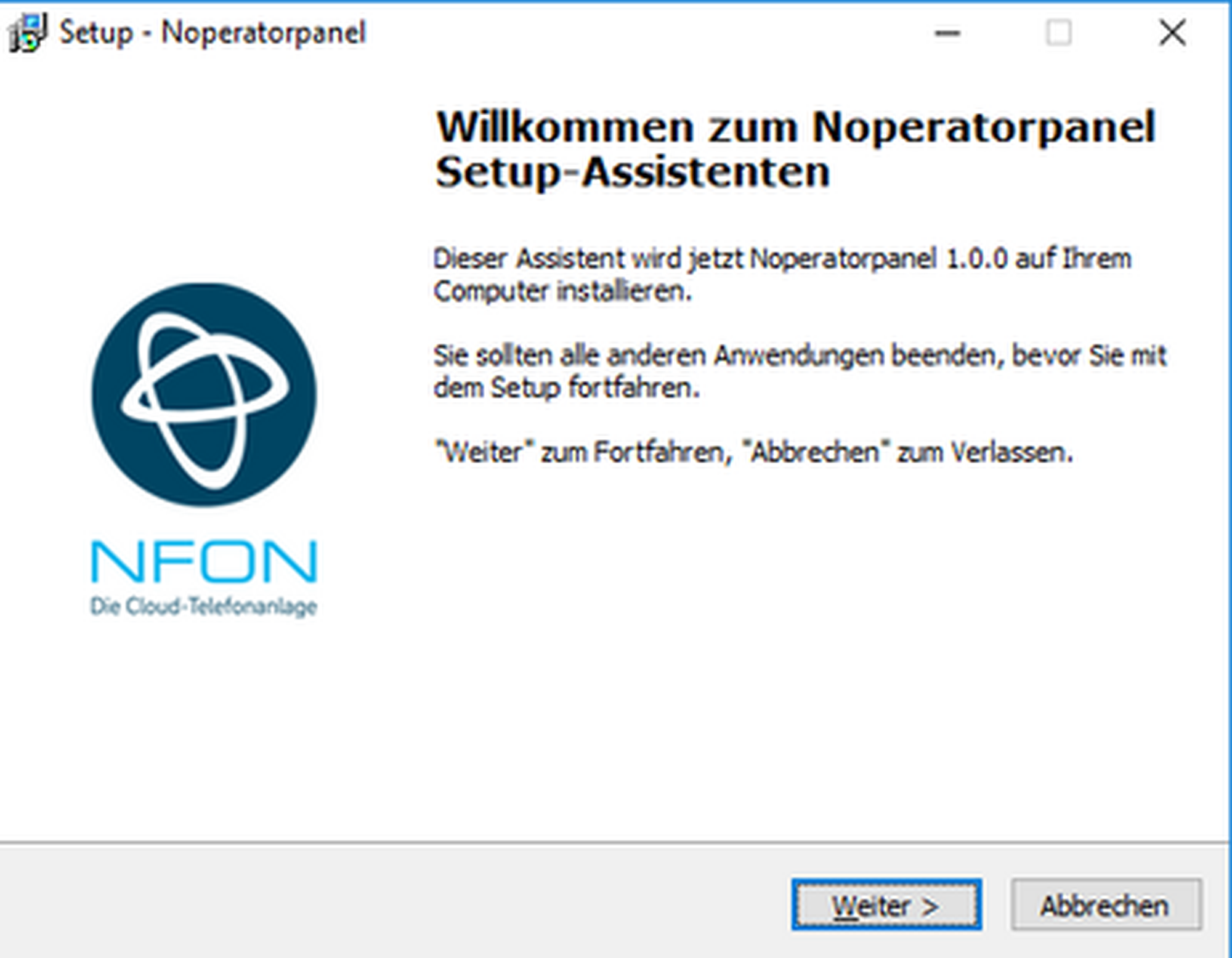 - Führen Sie bitte die Noperatorpanel.exe aus. Es erscheint nun der Setup-Assistent.