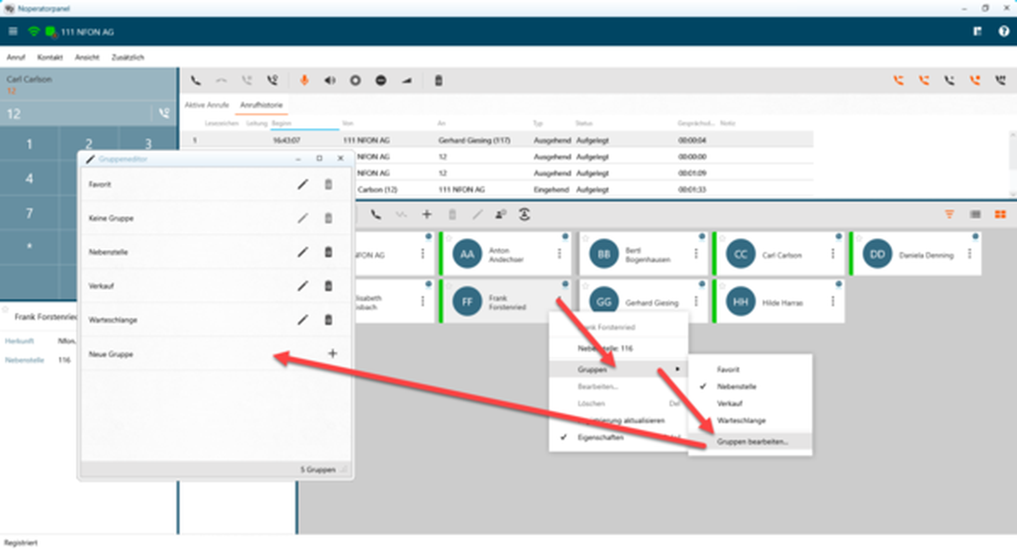 Standardmäßig werden Gruppen wie z.B. Nebenstellen und Favorit mitgeliefert.