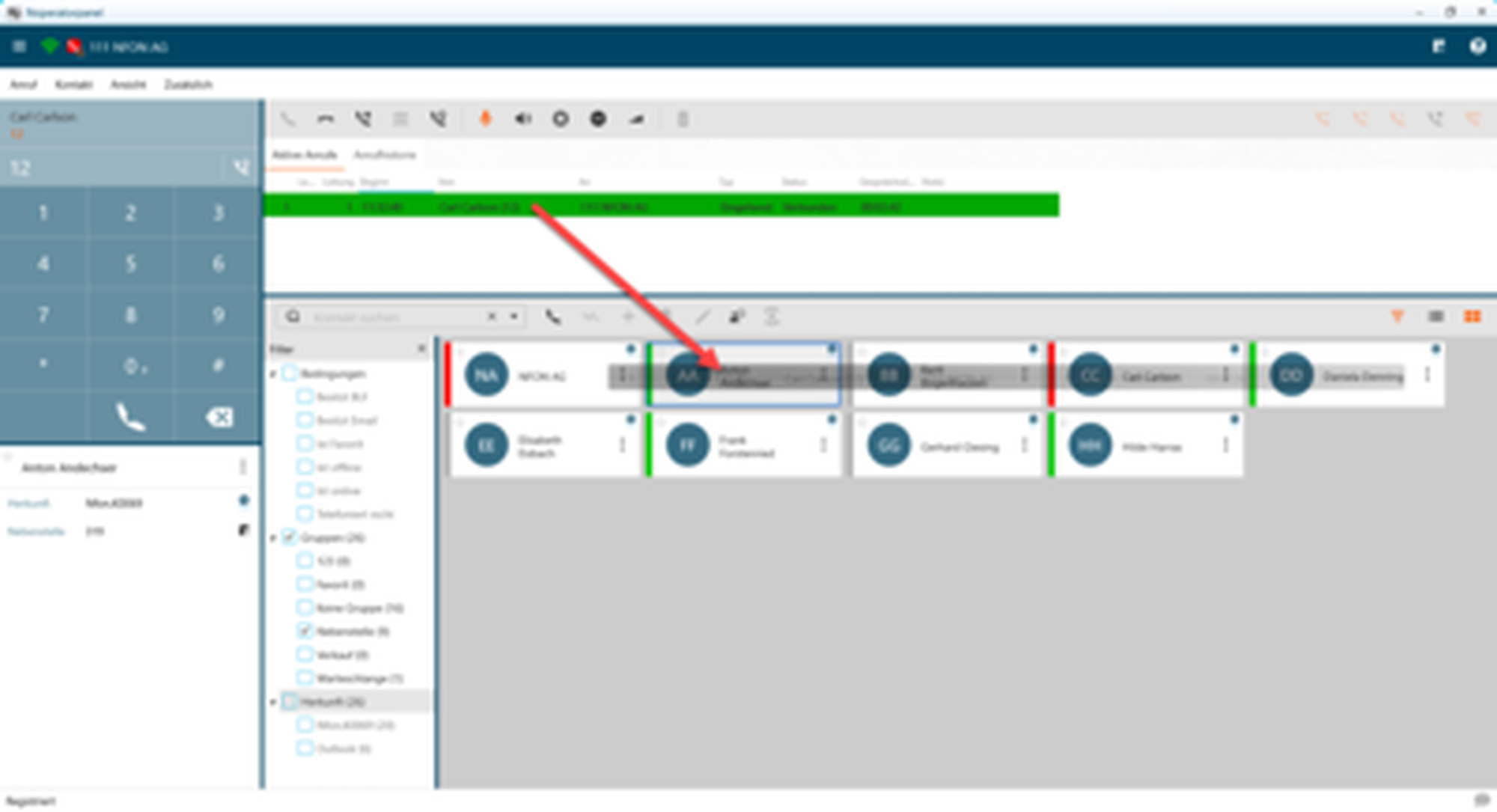 Sie können ein aktives Gespräch mittels Drag&Drop direkt auf einen Kontakt ziehen und somit blind weiterleiten.