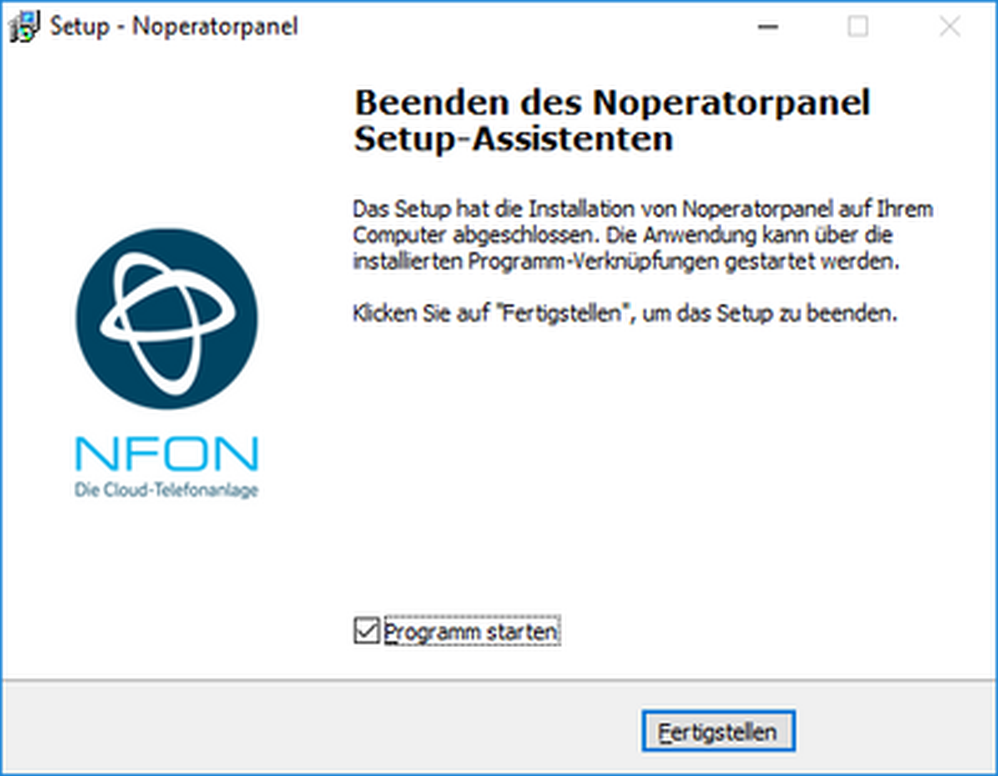 - Beenden Sie nun den Setup-Assistenten. Der NOP kann, falls gewünscht, automatisch gestartet werden.