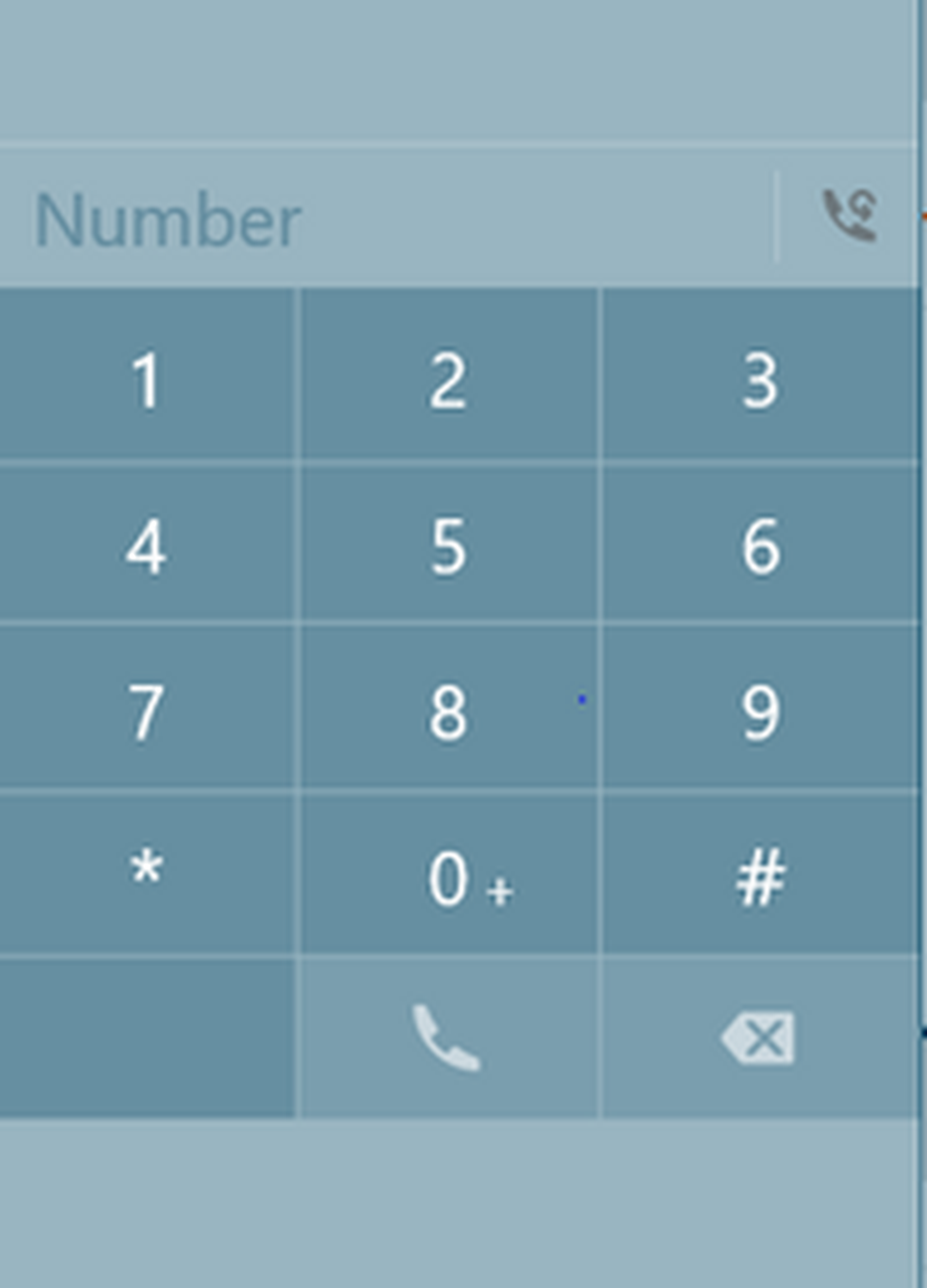 Das Wählfeld ist blau hinterlegt und befindet sich direkt unter der Statusanzeige. Dieses ist am rechten und unteren dunkelblauen Rand größenverstellbar.