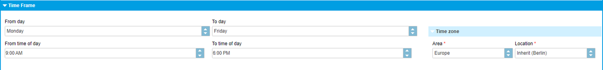 For time control services it is now possible to define time zones via defining the region (e. g. Europe) and the location (e. g. Berlin).